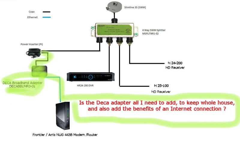 Whole home dvr wiring diagram for dtv setup with client wiring diagram for directv genie hr54. Wiring diagrams for one swm (no deca router package) wiring a swm8 with 1 dvr and deca router package. Wiring a swm8 with 2 dvrs and deca router package.